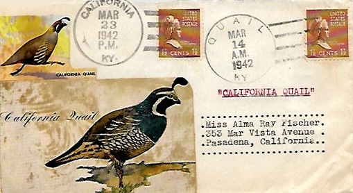 | Hand cancellations: "QUAIL, KY. MAR 14 1942". |