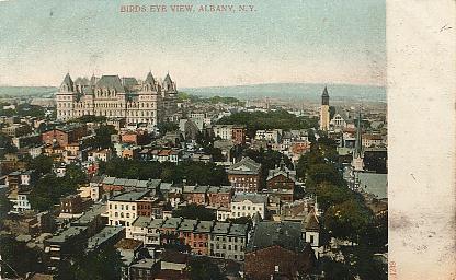 | "Birds eye view, Albany, N. Y.". Color printed postcard, UB. Published by A. C. Bosselman & Co., New York. Number 1249. Unused. Probably circa 1906. |