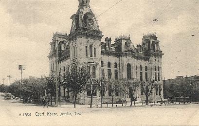| "Court House, Austin, Tex.". Black & white printed postcard, UB. Published by the Rotograph Co., N. Y. City. Number A17505. Unused. Probably circa 1906. |