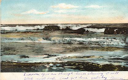 | "The angry ocean". Color printed postcard, UB. Published by J. Murray Jordan, Philadelphia. WONPU. Probably circa 1906. |