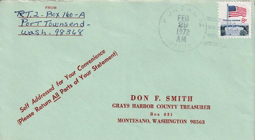 | Hand cancellation: "PORTAL, AZ 85632 FEB 29 1972". |