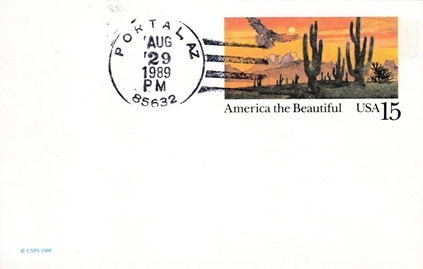 | Hand cancellation: "PORTAL, AZ 85632 AUG 29 1989". |