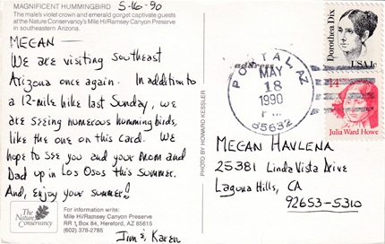 | Hand cancellation: "SIERRA VISTA, AZ 85635 USPS MAY 15 1990". |
