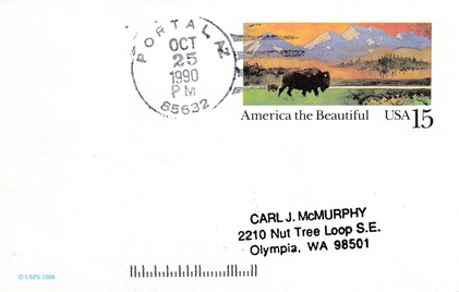 | Hand cancellation: "PORTAL, AZ 85632 OCT 25 1990". |