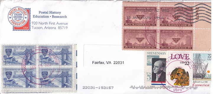 | Hand cancellation: "PHF PHILATELIC CENTER, TUCSON, AZ USPS FEB 19 2025". |