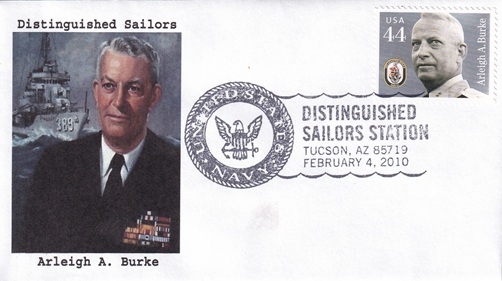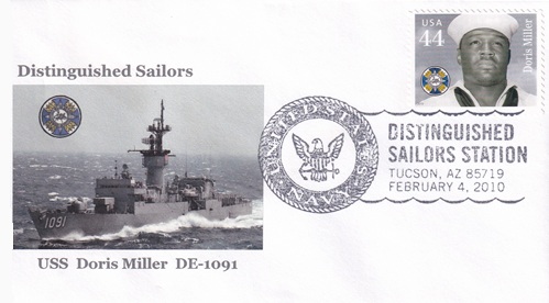 | These six cacheted covers salute distinguished sailors. Special hand pictorial & slogan cancellations: "DISTINGUISHED SAILORS STATION, TUCSON, AZ 85719 FEBRUARY 4, 2010 | UNITED STATES NAVY |". [TPS] |