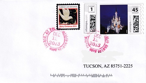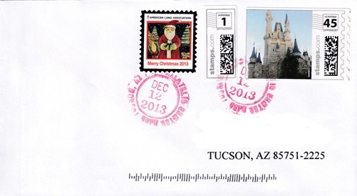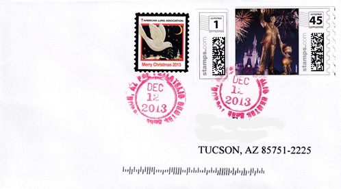 | Five hand cancellations: "PHF PHILATELIC CENTER, TUCSON, AZ USPS DEC 12 2013". |