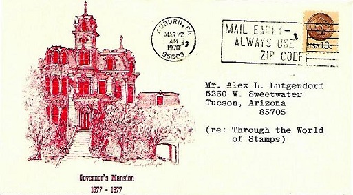 | Hand cancellation: "STA. A, AUBURN, CALIF. MAR 16 1957". |