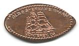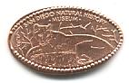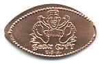 Here are images of the elongated, pinched, pressed, rolled, smashed, squashed, and squished pennies, and some dimes and quarters, from California in my collection. They are listed by the location of the machine or the subject of the coin.