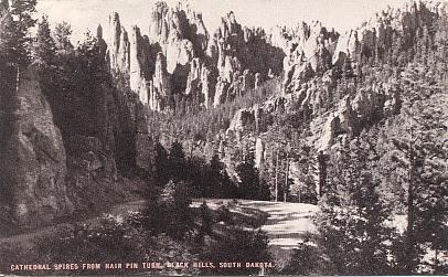 ![]() | "Cathedral Spires From Hair Pin Turn, Black Hills, South Dakota." [Postmarked 1951] |