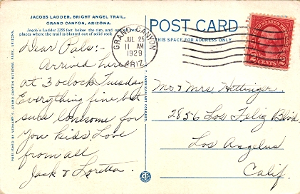Machine cancellation: "GRAND CANYON, ARIZ. JUL 25 1929".