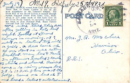 Machine cancellation: "GRAND CANYON, ARIZ. JUL 16 1932".