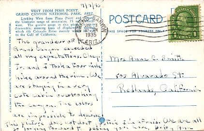 Machine cancellation: "GRAND CANYON, ARIZ. JUL 11 1935".