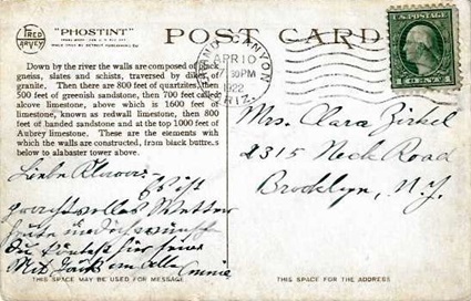 Machine cancellation: "GRAND CANYON, ARIZ. APR 10 1922".