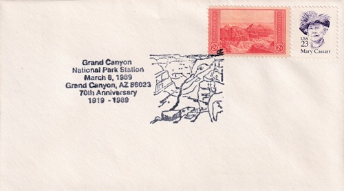 Hand cancellation: "GRAND CANYON, AZ 86023 USPS MAR 27 2013".