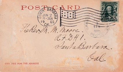 Hand cancellation: "REC'D., GRAND CANYON, ARIZ. JUN 1 1905". [TPC]