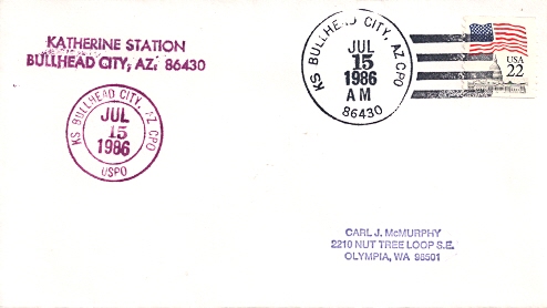 | Hand cancellation: "MOUNT WASHINGTON, NH 03589 JUL 7 1986". |