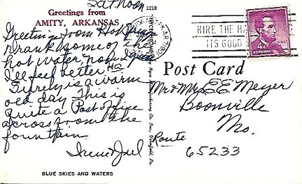 | Hand cancellation: "ARKANSAS POST, ARK. AUG 30 1941". |