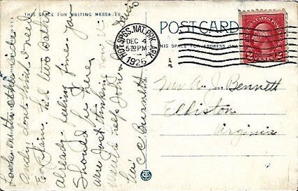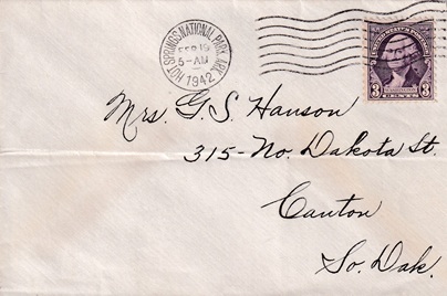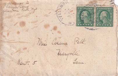 | Hand cancellation: "YELLOWSTONE PARK, WYO. AUG 21 1920". |