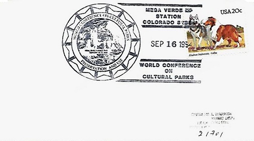 | Special hand pictorial cancellations: "NATIONAL PARK STATION, YELLOWSTONE, WY 82190 JUN 15 1987". |