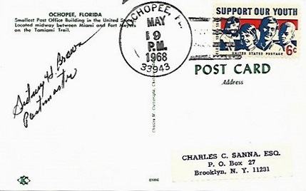 | Hand cancellation: "OCHOPEE, FL 33943 MAY 9 1968". |