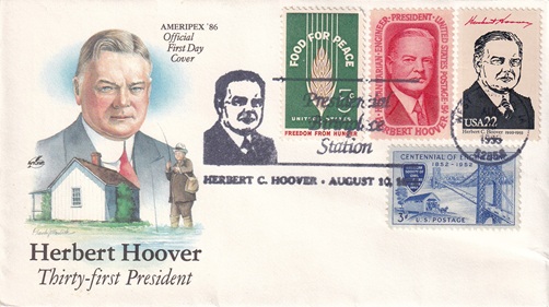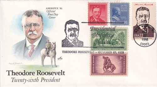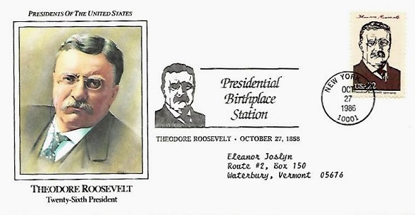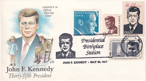 | Special hand pictorial & slogan cancellations: "Presidential Birthplace Station, QUINCY, MA 02169 OCT 30 1986 | JOHN ADAMS - OCTOBER 30, 1735 |". |