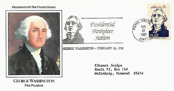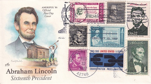 | Special hand pictorial & slogan cancellations: "Presidential Birthplace Station, HODGENVILLE, KY 42748 FEB 12 1987 | ABRAHAM LINCOLN - FEBRUARY 12, 1809 |". |