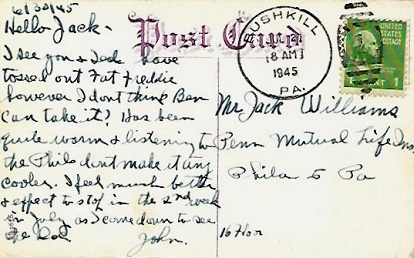| Machine cancellation: "BAR HARBOR, MAINE FEB 28 1945". |