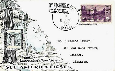 | Machine cancellations: "YELLOWSTONE PARK, WYO. JUL 30 1934". |