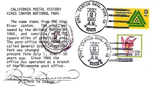 Here is an exhibit of the postmarks from U. S. Post Offices in America's national park sites. There are now over 430 park sites administered by the U. S. National Park Service. The post offices in this exhibit are or were located within the boundaries of some of these national park sites or surrounded by a national park site and may be either currently active or discontinued. Also included are special temporary post office stations [TPS] established within national park sites usually for one day to launch a new special postmark or a new postage stamp.