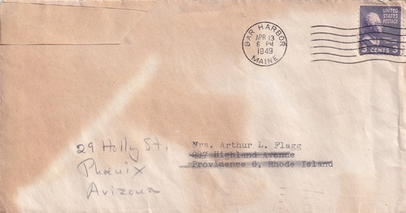 | Machine cancellation: "BAR HARBOR, MAINE APR 13 1949". |