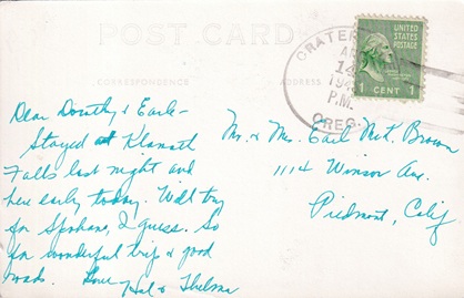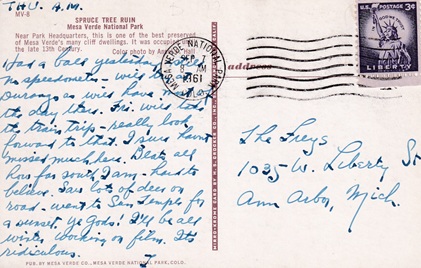 | Hand cancellation: "ZION NATIONAL PARK RUR. STA., SPRINGDALE, UTAH JUL 6 1960". |