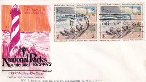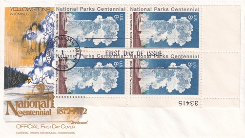 | Special hand slogan cancellations: "YELLOWSTONE NATIONAL PARK, WY 83020 MAR 1 1972 | FIRST DAY OF ISSUE |". |