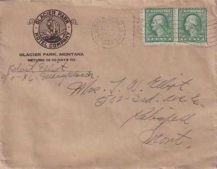 | Hand cancellation: "YELLOWSTONE PARK, WYO. JUL 27 1920". |