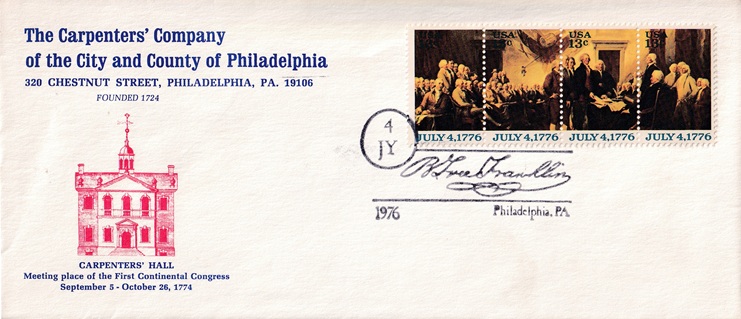 | Two special hand cancellations: "BENJAMIN FRANKLIN MEMORIAL STA., PHILADELPHIA, PA. MAY 19 1938". |