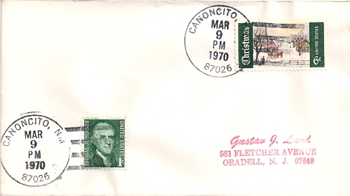 | Hand cancellation: "CANONCITO, NM 87026 MAR 9 1970". |