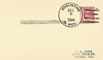 | Hand cancellation: "AUGUSTINE, N. MEX. USPS DEC 3 1954". |