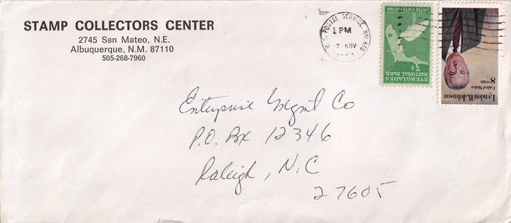 | Hand cancellation on back: "PARADISE HILLS RUR. STA., ALBUQUERQUE, N. MEX. USPO SEP 8 1970". |