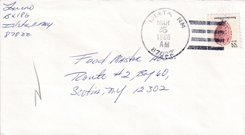 Hand cancellation: "ALAMEDA BR., ALBUQUERQUE, N. MEX. MAY 13 1986".