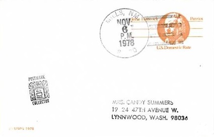 | Hand cancellation on front & back: "MILLS, NM. 87730 NOV 6 1978". |