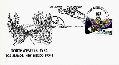 ![]() | Special hand pictorial & slogan cancellation: "SOUTHWESTPEX STA., LOS ALAMOS, NEW MEX. 87544 OCT 13 1967 | LOS ALAMOS STAMP COLLECTORS' ASSOCIATION |". |