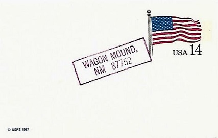 | Rectangular hand cancellation: "WAGON MOUND, NM 87752" [circa 1988]. |