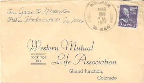 | Hand cancellation: "HOLMAN, N. MEX. MAR 30 1953". |
