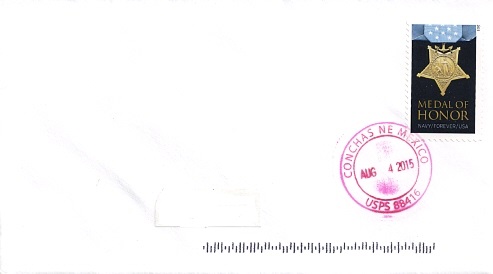 | Hand cancellation: "CONCHAS, NE MEXICO 88416 USPS AUG 4 2015". |