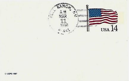 | Hand cancellation: "BELL RANCH, NM 88441 MAR 11 1988". |