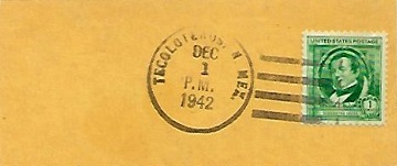 | Hand cancellation on cut piece: "TECOLOTENOS, N. MEX. DEC 1 1942". |