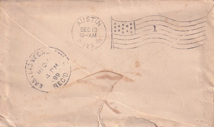 | Hand cancellation on back: "REC'D., EAST LAS VEGAS, N.MEX. DEC 19 1899. [TPC] |
