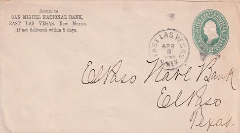 | Hand cancellation on back: "EAST LAS VEGAS, N.MEX. JAN 20 1897". [TPC] |