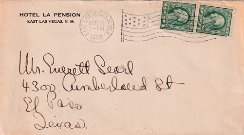 | Machine flag cancellation: "EAST LAS VEGAS, N.MEX. AUG 15 1920". |