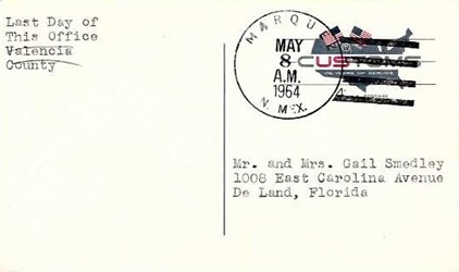 | Hand cancellation: "MARQUEZ, N. MEX. MAY 8 1964". |